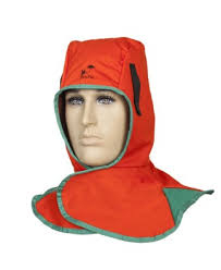 Kapuca za čelade oz. avtomatske maske Weldas, izdelane iz protipožarne tkanine z zapiranjem na ježka in z ježkomza pripenjanje na opremo za varjenje.